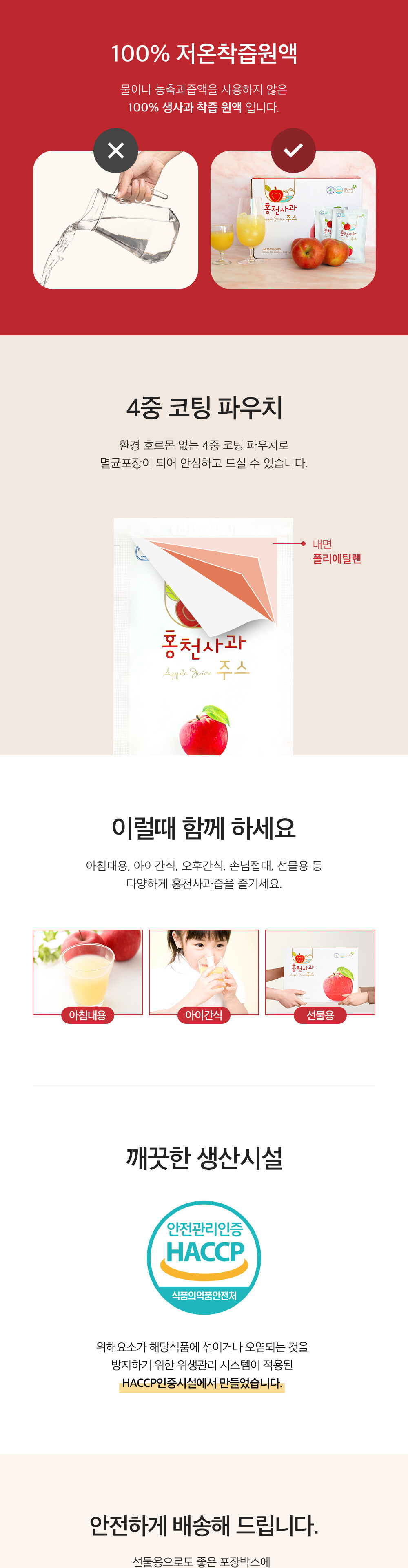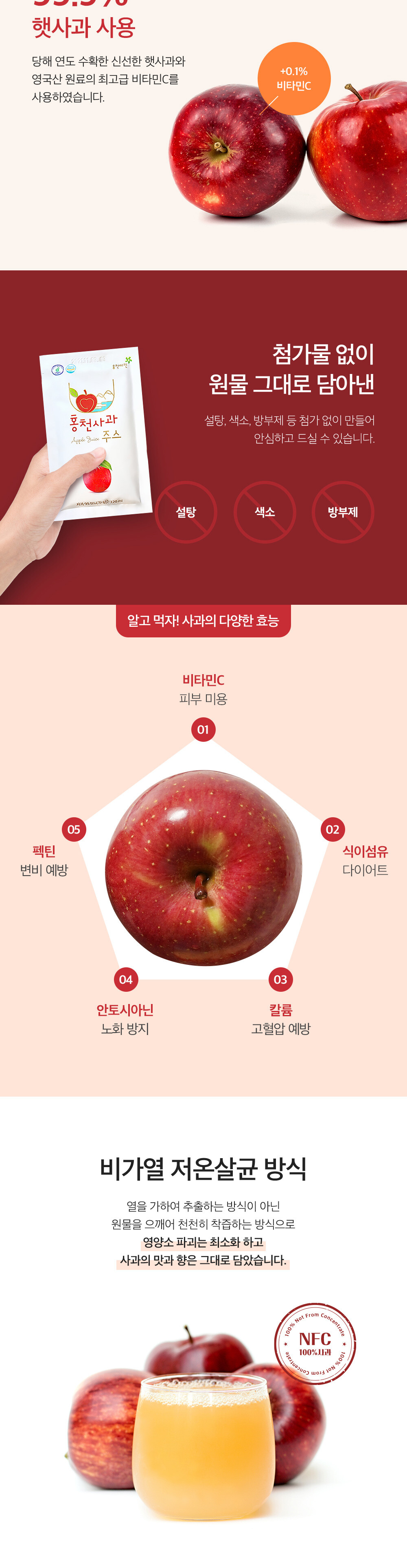 첨가물(물) 없이 원물 그대로 착즙한 홍천 사과즙